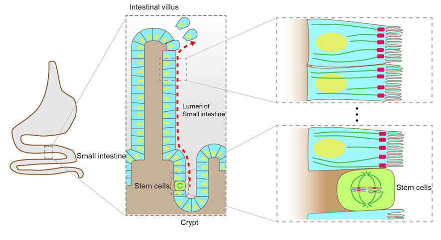 Figure 2-2 Newborn cells generated through division of stem cells are moved toward villus to be metabolically circularized in intestinal epithelial tissue